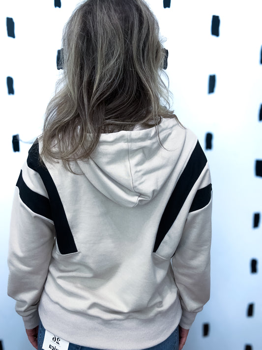 Beige Colorblock Half Zip Up Hoodie