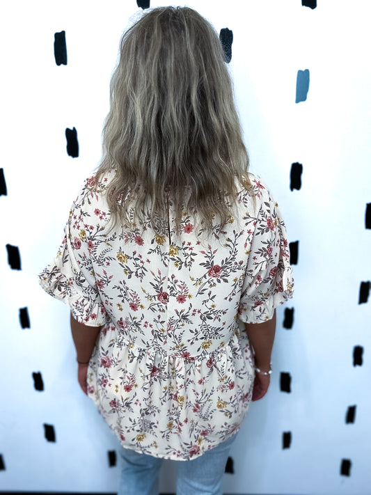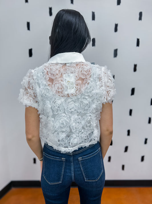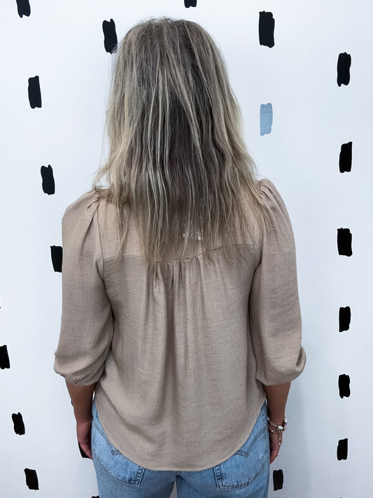 Floral Embroidered Detail 3/4 Sleeve Blouse