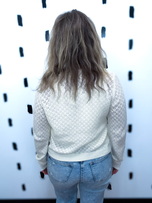 Cream Eyelit Knot Pattern Button Up Cardigan