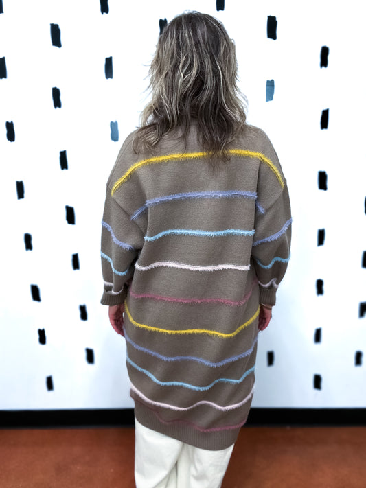 Lt.Mocha MultiColor Striped Long Cardigan