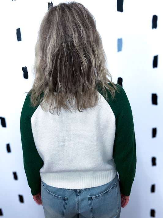 Cream/Green Raglan Sweater