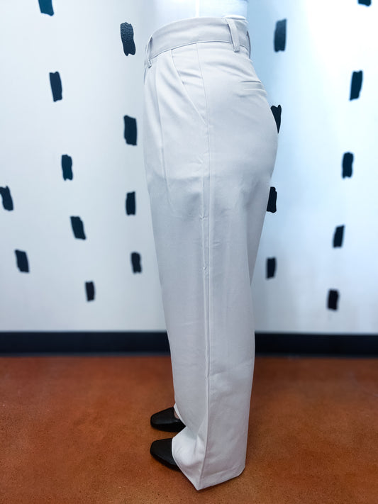 Ecru Straight Leg Loose Fit Pintuck Trousers