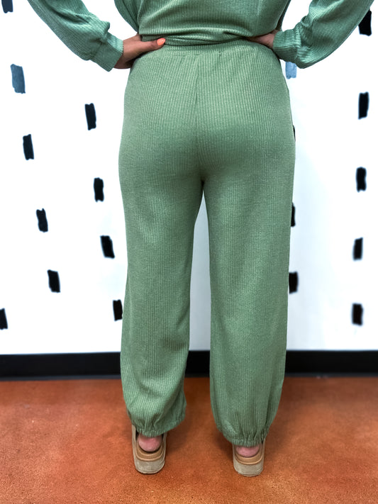 Olive Soft Stretchy High Rise Wide Leg Pants