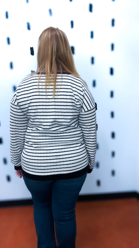 Cream/Black Long Sleeve Stripe Top