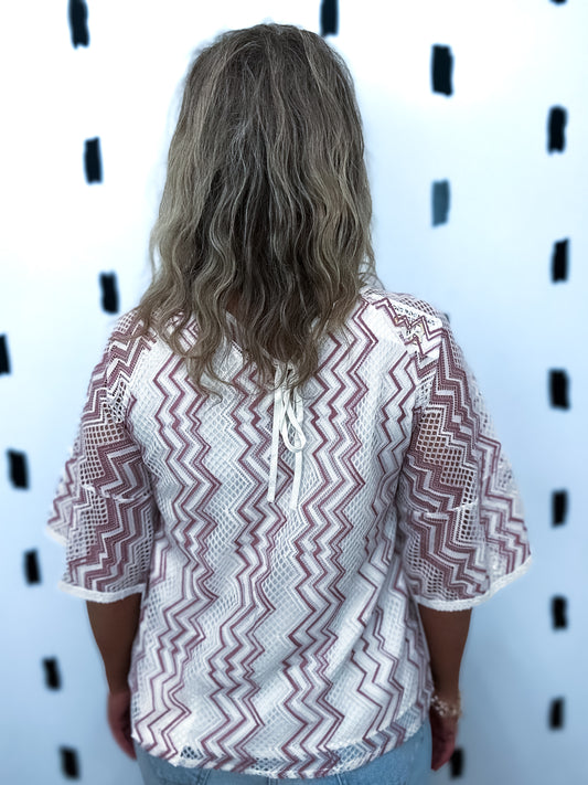 Taupe Contrast Stitch Detail Short Sleeve Top