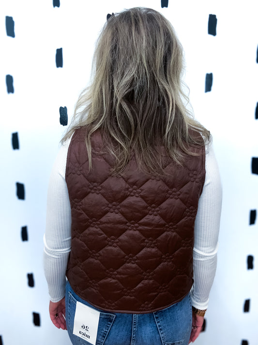 Espresso Collar Quilted Tie Front Vest