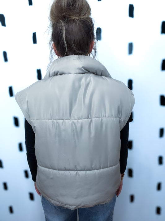 Cement Snap Button Puffer Vest