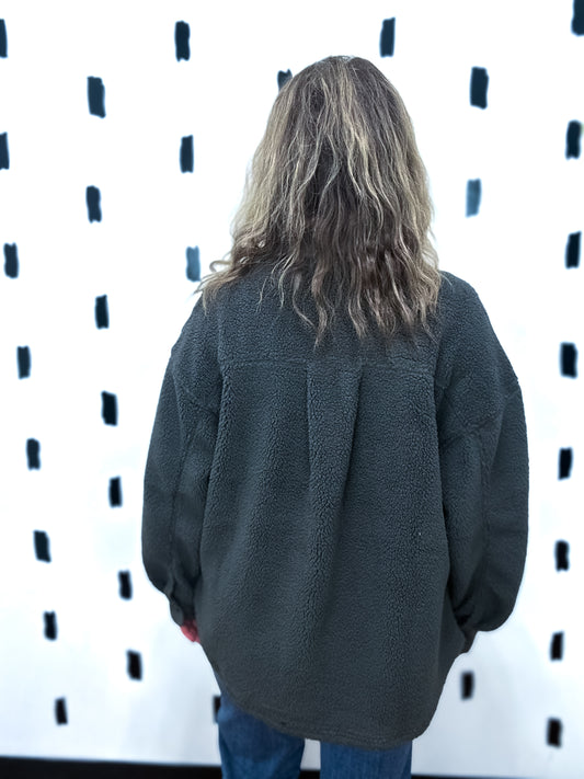 Charcoal Fuzzy Fleece Sherp Shacket