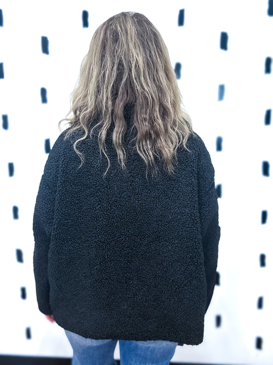 Black Teddy Sherpa Fleece Zip Up Jacket