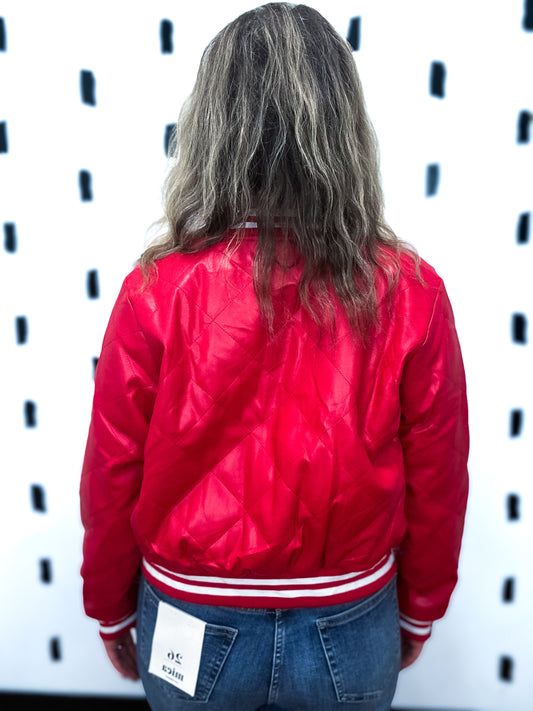 Red Quilted Bomber Jacket