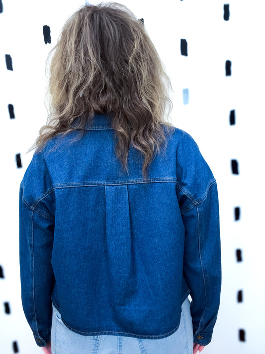 Indigo Button Up Cropped Denim Jacket