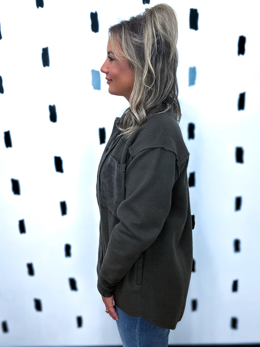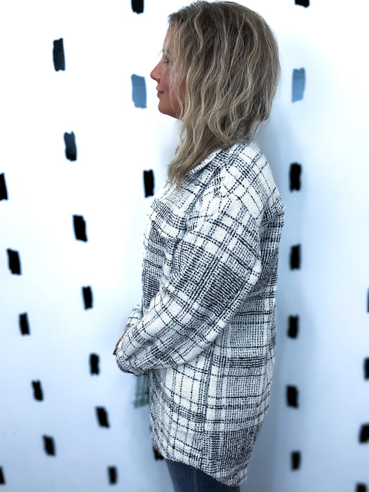 Black/White Bouncle Plaid Longline Shirt Jacket