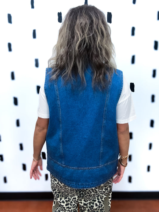 Med Wash Denim Vest With Pockets