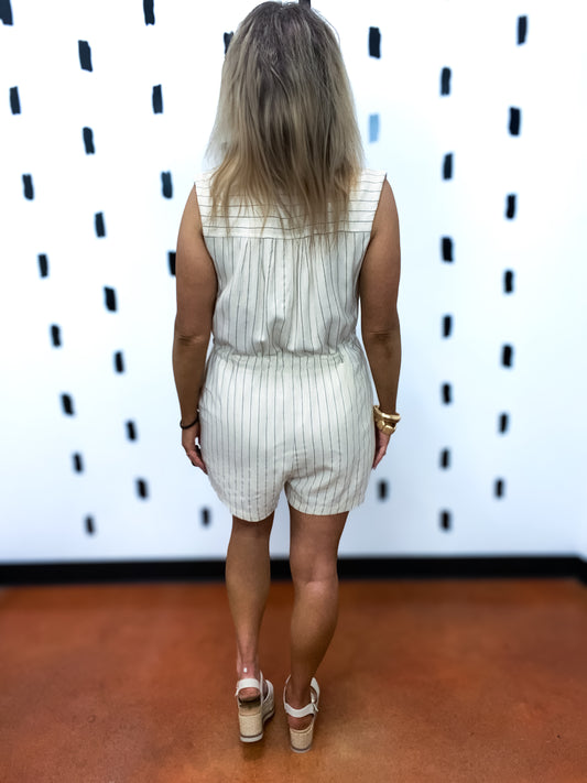 Dusty Indigo Sleeveless Drawstring Waist Romper