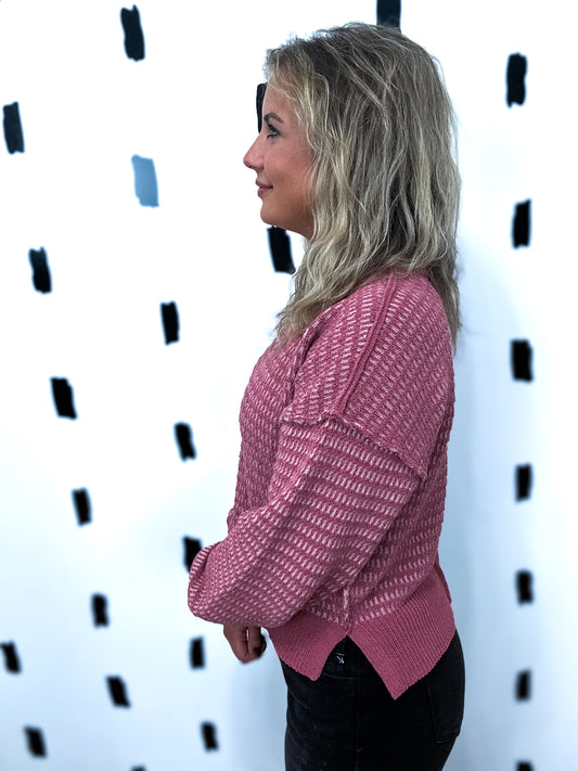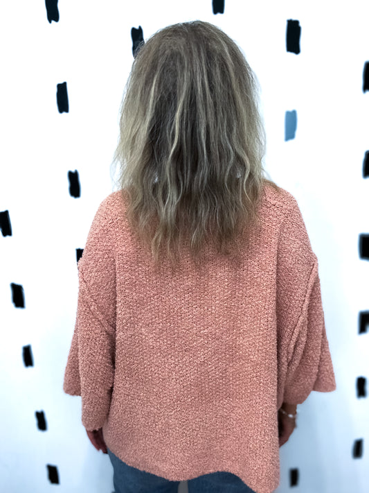 Rosewood Fuzzy Texture 3/4 Sleeve Top
