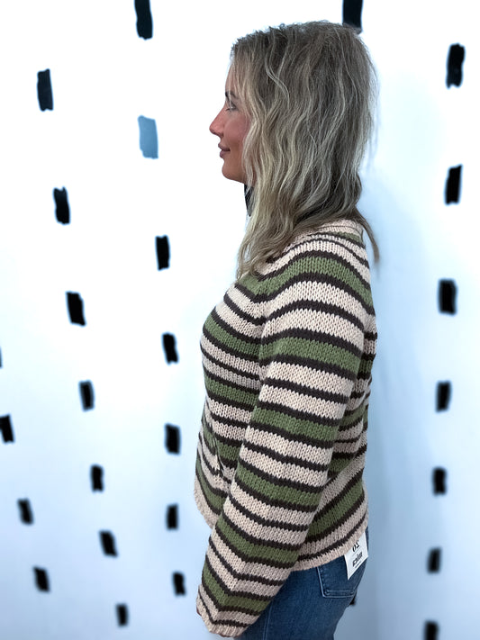 Olive Multi Stripe Kangaroo Pocket Sweater