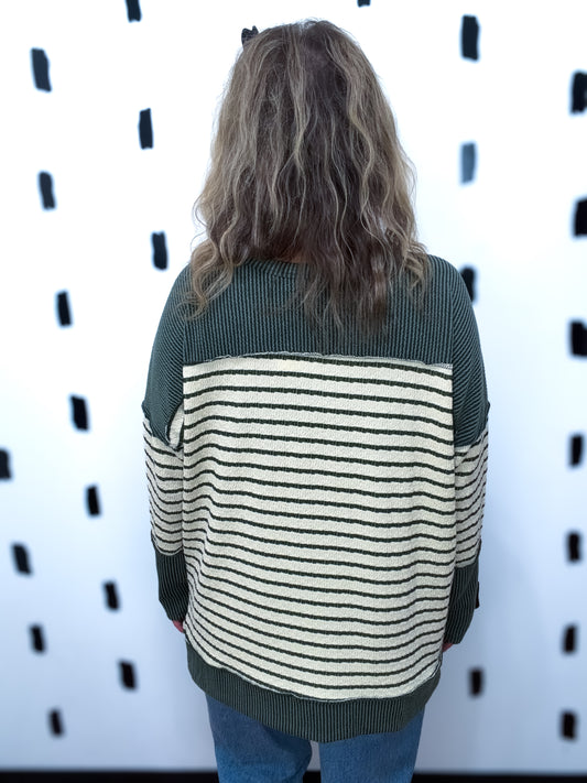 Pink/Blue Colorblock Patchwork Long Sleeve Top