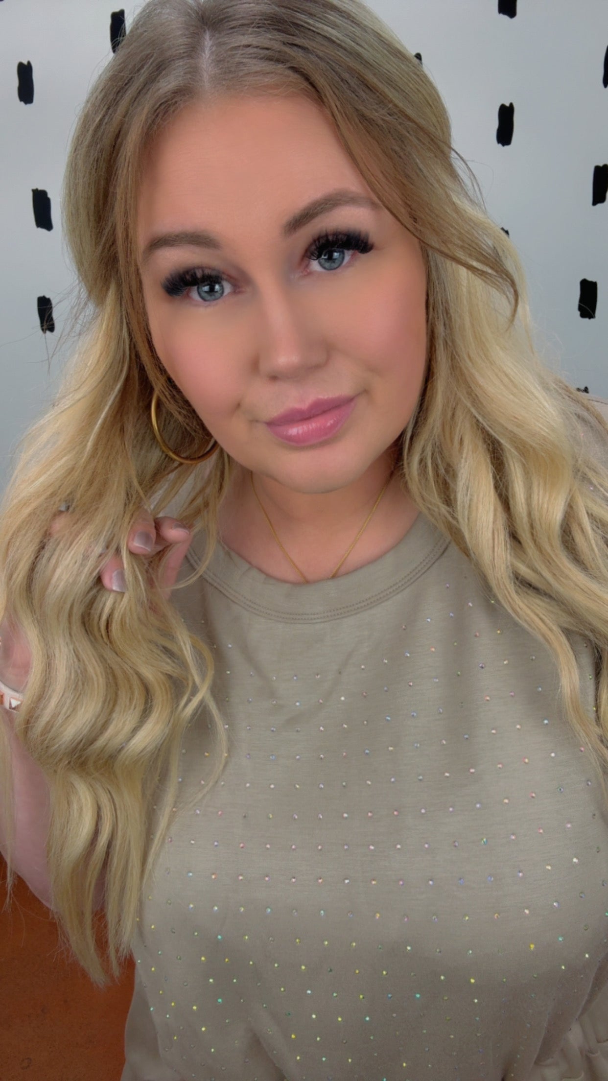This mocha rhinestone jogger jumpsuit is so soft and comfortable! The cinch waist provides the most flattering fit! We love the tiny rhinestones all over the front top with the button details in the back! Throw on your favorite denim jacket or flannel to elevate the look and you are ready to go! Andrea is wearing a size 2X!