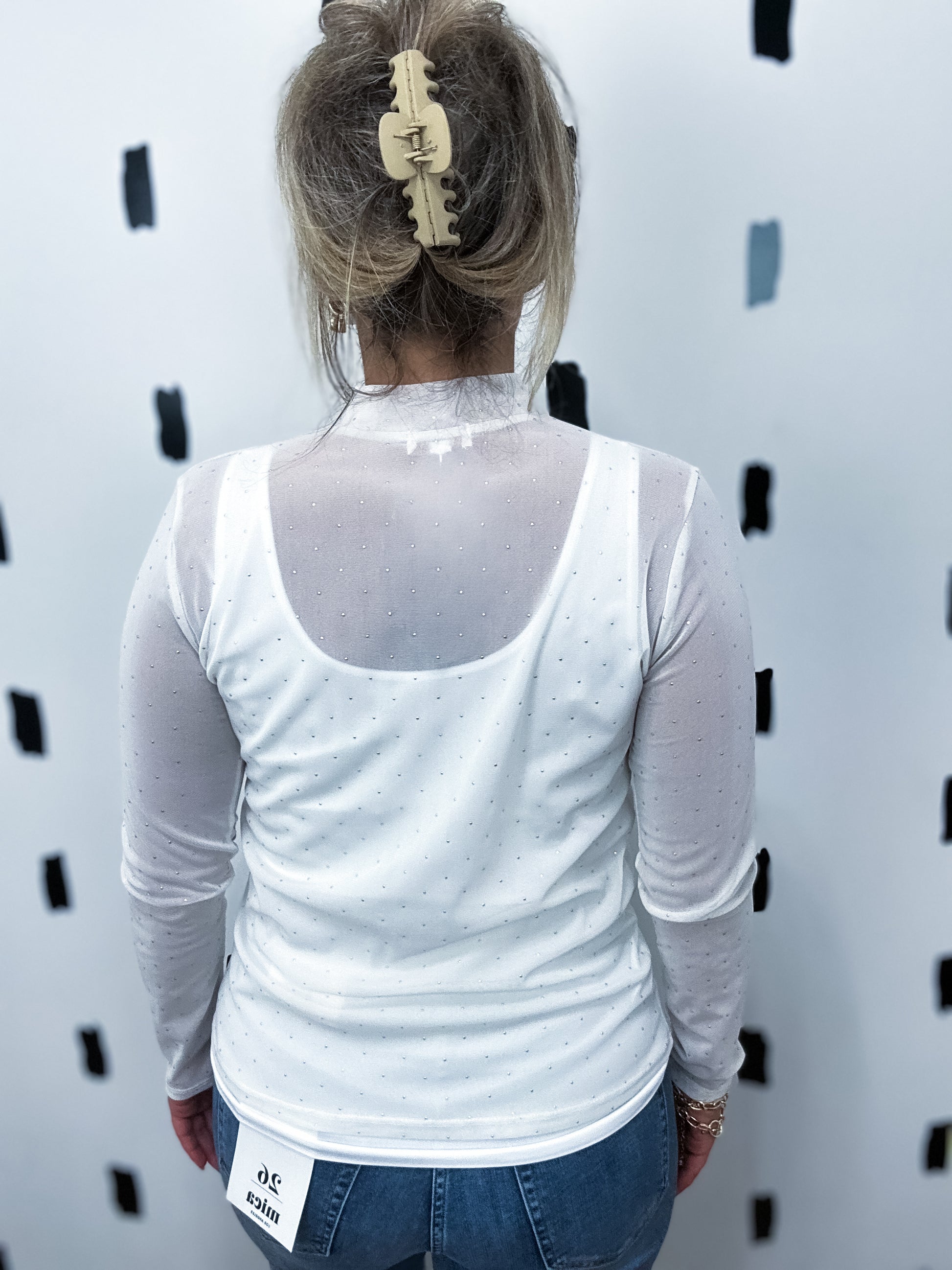 White Mesh Top With Silver Embellishments