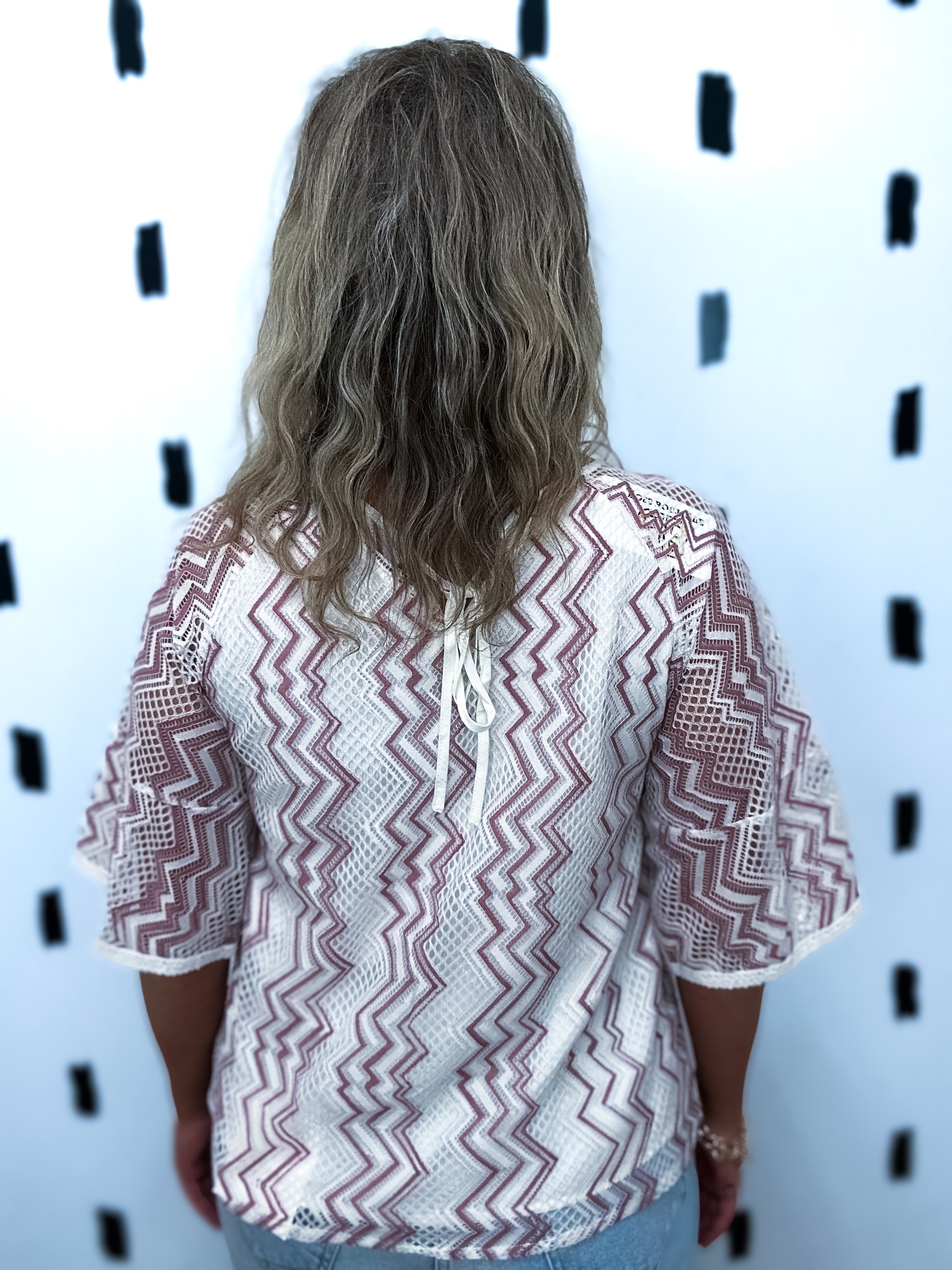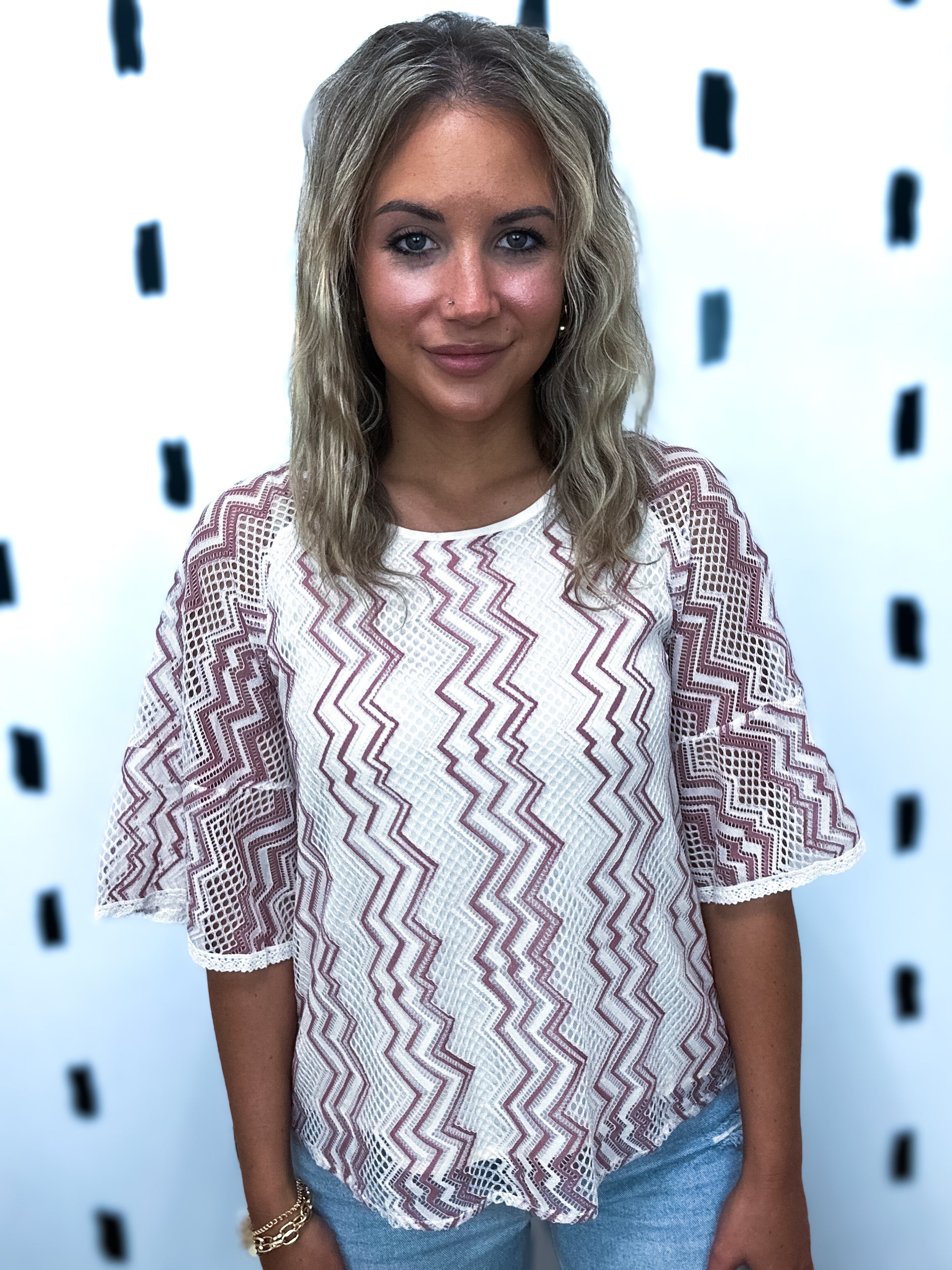 White Zig Zag Lace Short Sleeve Blouse